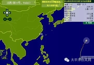 2014年2月17日,一个低压区于关岛东南偏南方海面上生成。美国海军研究实验室给予扰动编号93W。下午3时,联合台风警报中心对其在24小时内形成为热带气旋的机会给予“LOW”的评级。 2月20日下午2时,联合台风警报中心对其取消评级。 2月21日下午2时,联合台风警报中心再度对其在24小时内形成为热带气旋的机会给予“LOW”的评级。 2月22日下午3时,联合台风警报中心再次对其取消评级。 2月23日上午9时,联合台风警报中心第三次对其在24小时内形成为热带气旋的机会给予“LOW”的评级。 2月26日上午5时,联合台风警报中心对其评级提升为“MEDIUM”。上午11时,日本气象厅将其升格为热带低气压。下午1时,联合台风警报中心对其发布热带气旋形成警报。下午3时,日本气象厅对其发出烈风警报。 2月28日上午9时,联合台风警报中心将其升格为热带低气压,并给予编号03W。下午8时,联合台风警报中心将其升格为热带风暴。 下午9时,日本气象厅将其升格为热带风暴,并命名为“法茜”。3月3日下午3时,日本气象厅将其升格为强热带风暴。 3月4日下午11时,联合台风警报中心将其升格为一级台风。 3月5日上午3时,日本气象厅将其升格为台风。日本气象厅将其降格为强热带风暴。下午5时,联合台风警报中心将其降格为热带风暴。下午8时,日本气象厅将其降格为热带风暴。下午11时,联合台风警报中心发出最后警报。 (责任编辑:追风一号) |